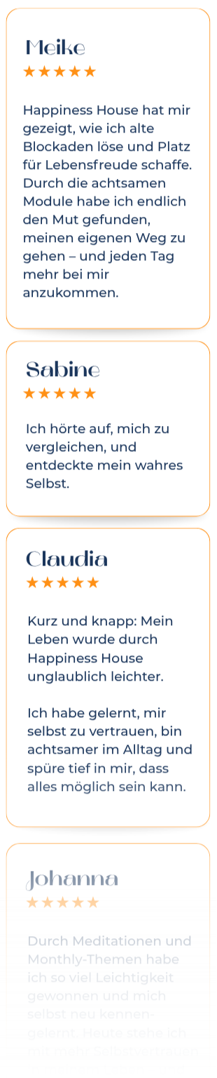 Happiness House ist mehr als ein Online-Portal – es ist ein geschützter Raum für Wachstum, Schwingungserhöhung, Verbundenheit & Erwachen.